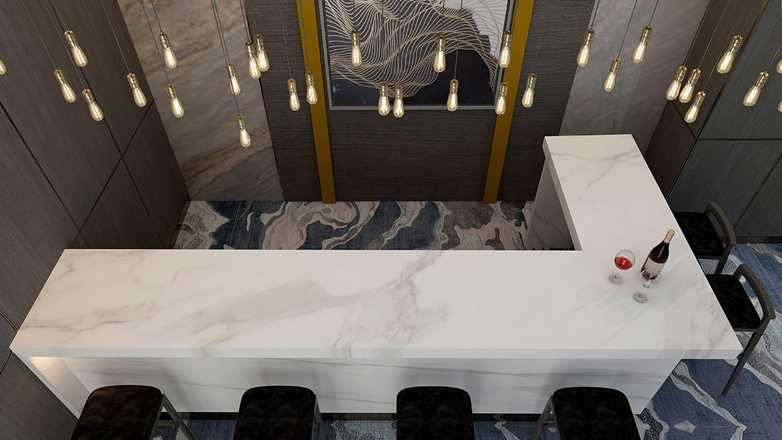 Calatacatta Romalı adını uygun bir biçimde yaşatacak şekilde tasarlanan Calacatta, parlaklığında lüksü yansıtıyor. Geniş gri damarlar, tezgahın her alanında çarpıcı ve şık bir çekicilik sunuyor. Tezgahı nasıl kullanacağınızın seçimini size bırakıyor.